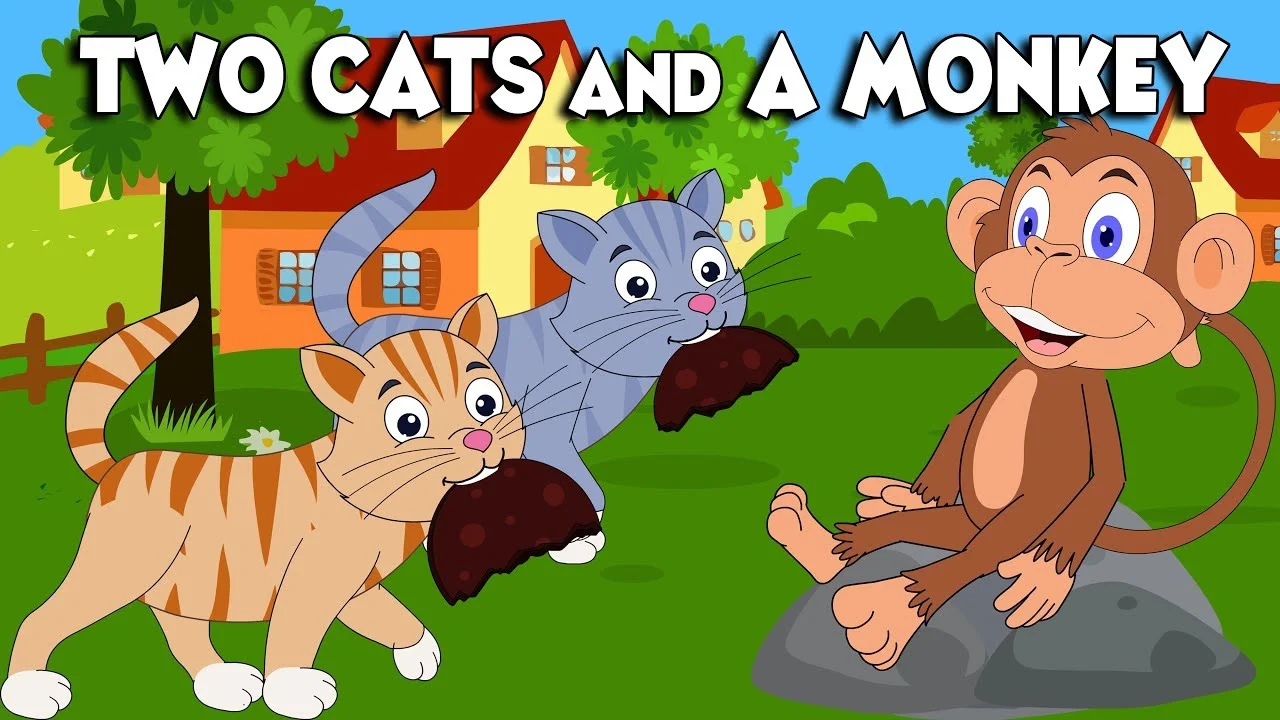 Two cats lived in a house. Once the stole a piece of cake. They could not decide to divide the cake between themselves. So they began to quarrel over the share. At last they came to a monkey and asked him to make two equal divisions of the cake. The clever monkey took the opportunity to deprive them of the thing. So he began to weigh the cake after breaking it into two parts. Each time he put the unequal portions on the scale and bit a part of it to make them equal. Thus he ate up the entire cake. Thus the two cats were befooled by the monkeyand went away.