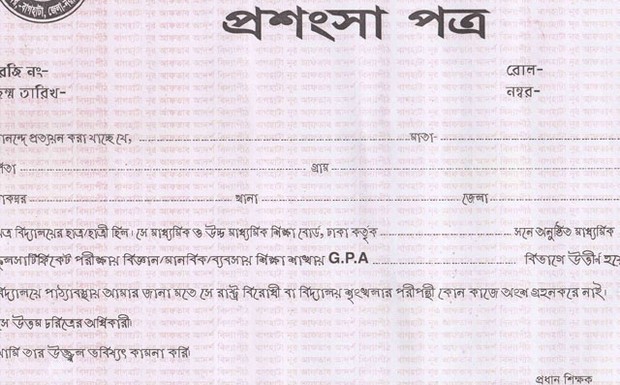 যথােচিত সম্মানের সাথে আপনাকে অবহিত করতে চাই যে, আমি সম্প্রতি আপনার বিদ্যালয় থেকে এসএসসি পরীক্ষায় পাশ করেছি এবং জিপিত্র - ৫ অর্জন করেছি। বাণিজ্য ভর্তি শাখায় আমার রােল নম্বর ছিল -৭৭১৩৫৫। এখন, আমি একটি কলেজে হতে চাই। সুতরাং, আপনার কাছ থেকে আমার একটি প্রশংসাপত্র/চারিত্রিক সনদপত্র প্রয়ােজন।